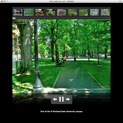 If you mouse over the the image, controls will appear that allow you to pause the show, go back, or advance a slide.