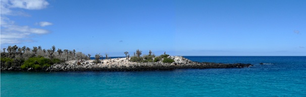 The Plaza Islands are two small islands just east of Santa Cruz. They are home to sea lions, iguanas, and a number of birds. On the map, you can see our path south of the landing point, then along the cliffs. We walked back across the width and then to the landing.